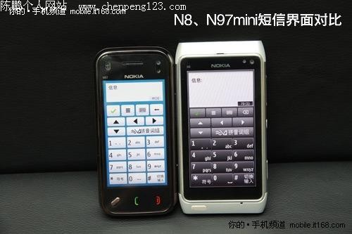 诺基亚N8和N97mini都支持手写输入,其中在框式手写中N97mini只拥有两个填字栏,而N8达到了4个,方便用户快速输入。此外,N8短信界面里的每颗按键都有足够大的尺寸,不会造成误操作现象。