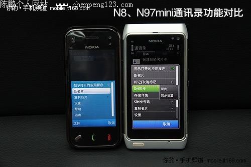 诺基亚N8的拨号界面以及通话设置与N97mini几乎相同,但在通讯录功能中,N8在列表中增加了一项Ovi同步功能,方便用户直接将联系人进行同步。