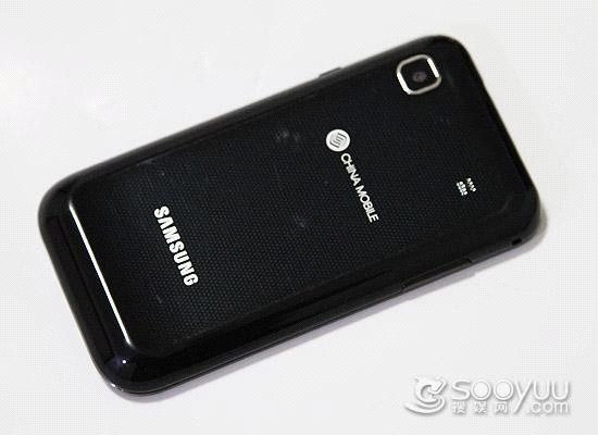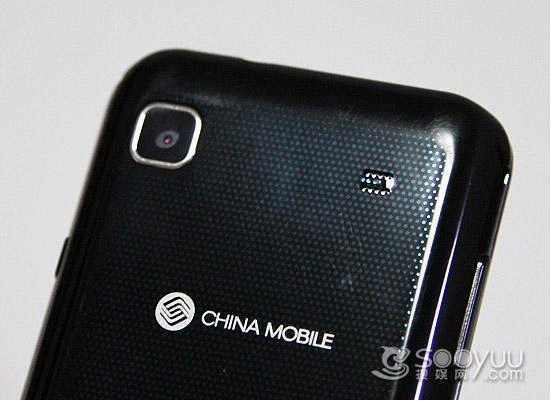 在背面的顶部位置可以看到本机的摄像头、扬声器以及“CHINA MOBILE”的logo。值得一提的是本机搭载的是一个500万像素的摄像头,达到了目前的主流水准。在摄像头旁边也并没有LED补光灯装置,看来本机的拍摄功力应该一般。