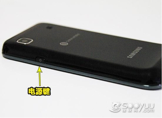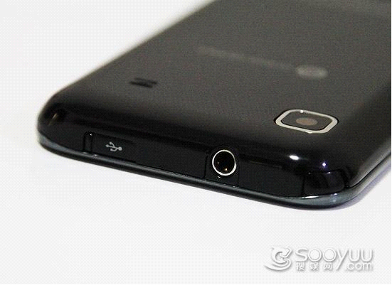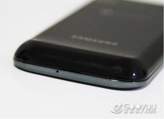 相对而言在手机的底部就是比较简单了,没有任何的接口和按键,这个设计与其他的Galaxy S系列的手机风格一致。我们紧紧是在中间的位置看到有一个通话用的小孔以及打开手机后盖的小凹槽。