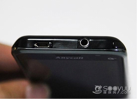 三星i9008在机身顶部有一个3.5mm的耳机接口以及microUSB制式的接口,本接口是支持数据传输以及充电功能的,表现很全面,另外作为中国移动TD-SCDAM的定制手机,在机身右上角的角落中还有一个CMMB数字电视的接收天线。