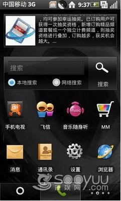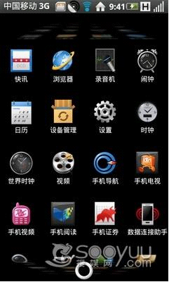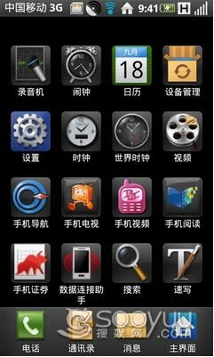 在Galaxy S系列手机中,中国移动定制的i9008是唯一采用OMS操作系统的手机,针对OMS系统界面不流畅的普遍问题,我们一起看看本机的表现,首先是在解锁界面,本机沿用了经典的圆圈滑动解锁。主界面默认有四页,可以左右滑动。不得不说的是三星i9008保持了i9000出色的流畅度,做到了完美顺畅,是目前OMS系统中的王者,令人钦佩。