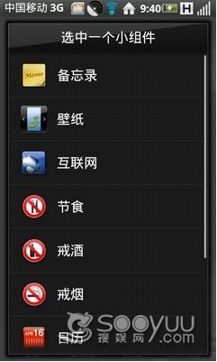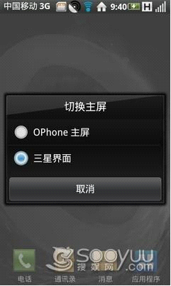 在切换了到三星主界面之后可选择的小组件也会发生变化,会根据三星自己的界面添加各种程序,感觉完全在使用两部手机,很个性的功能。