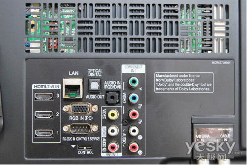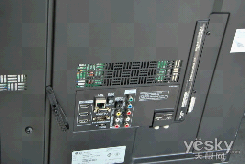 为了兼顾机身厚度和用户使用的便捷性,LG 55LX9500的端子配置进行了精心的设计。仅仅有两路色差端子需要通过转接线输出,最常用的4路HDMI端子、2路USB端子、天线端子、光纤SPDIF端子等其他端子都采用了常规布局。