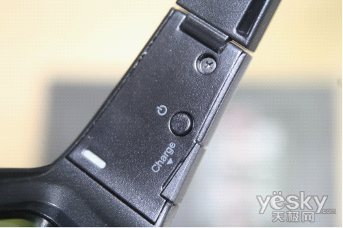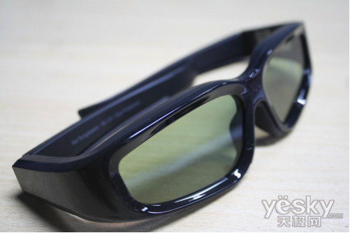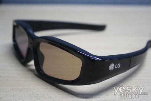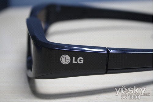 LG 55LX9500 3D电视由于采用了偏时式3D技术的电视,主动快门式3D眼镜是必须的。在这款眼镜的中央部位可以清楚的发现红外信号接收器,而这也是所有主动快门式3D眼睛的标志之一,同时在右侧镜腿里面也设计了充电口和开关按键。