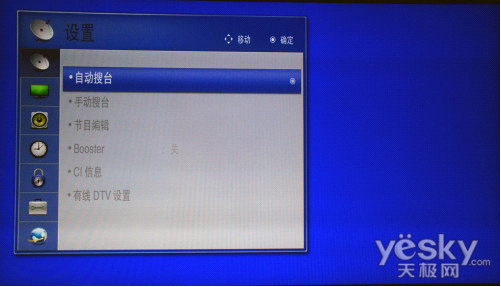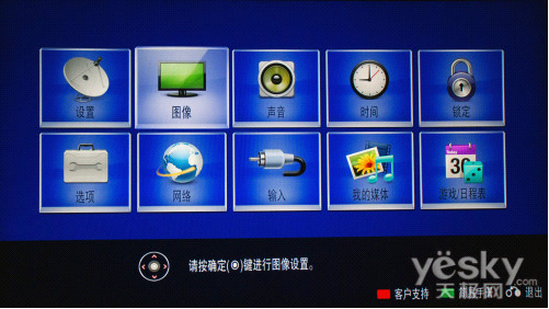 在菜单方面,LX9500依然采用了LG沿用多时的图标+文字式菜单系统。分为设置、图像、声音、时间、锁定、选项、网络、输入、我的媒体和游戏十个大类。其中图像、声音最容易理解也是平时用的最多的项目,而设置则包括了频道搜索的项目,网络是为了网络功能设计,我的媒体为了流媒体功能设计,游戏则是体感功能体现,而选择输入源则是在输入项中选择。