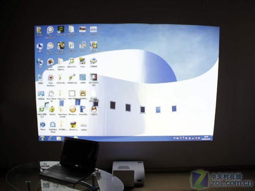 2,亮度不均匀——太不均匀了!亮度的强弱与距离面积都有关系,对于零距离投影机,远端与近端的投射距离差距巨大,达到了6倍以上,无需实际测试的数据来佐证,肉眼便有体会。