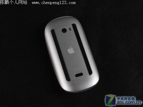 Magic Mouse底部全部采用铝合金材质制作,这在鼠标设计中极其少见,磨砂的金属表面即增加了产品本身的时尚感,又可以提升鼠标本身耐用性,用户在使用时可以 感觉到金属所带来的丝丝凉意和独特触感。不过Magic Mouse鼠标低平的鼠身在使用时对手掌没有任何支撑,用户长时间使用时,很容易感到疲劳。