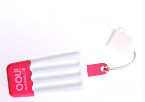 OOU是一款雪糕造型USB存储器,貌似国内已经有代理,广告上写得好“儿时最朴实快乐的回忆,任何时候都想念的心灵凉意;三星内芯,足量内存;高纯度无毒害塑料,四维灌塑成型,无缝接口”正好符合夏日的雪糕咱的情节。不过这东西,最好还是让小妹妹们玩吧!
