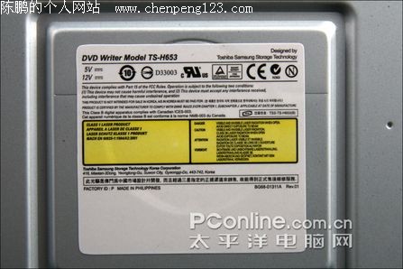 从产品铭牌上我们可以看到该款DVD刻录机的产地为菲律宾。