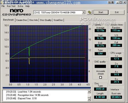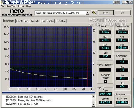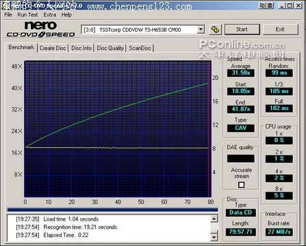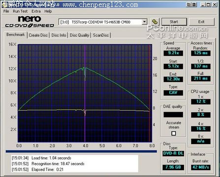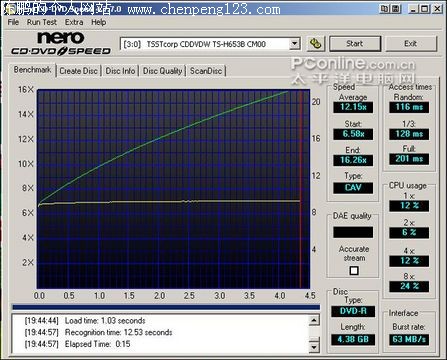 为了检验这款刻录机的具体效能,接下来我们将进行一系列读写测试,首先是三星TS-H653(B)对CD-R、DVD-R、DVD+R、DVD-R DL和DVD-RAM五种数据盘的数据读取性能,也就是抓轨测试。