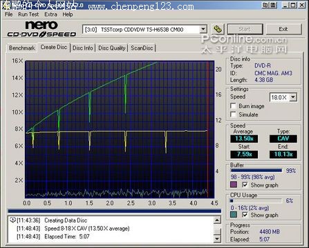 三菱“白面”DVD-R 16×刻录曲线图:可超刻至18×