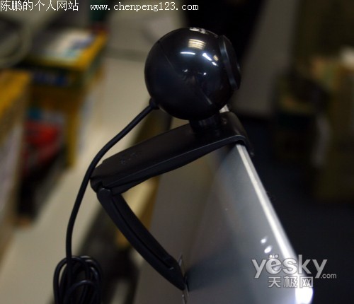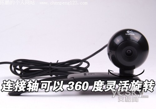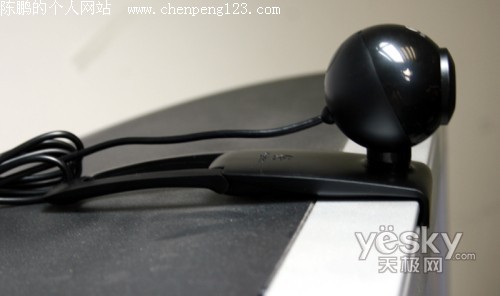 下方的脚夹是一个小小的特色,罗技的产品设计师脚夹的设计上充分地体现了自己的聪明才智。可以看到,当需要在液晶LCD或笔记本电脑上使用摄像头的时候,只需将脚夹如图示一般,即可形成一个稳定的三角固定;而当需要在传统CRT显示器上使用时,只需将脚夹完全打开,同样可以稳定的被放置;