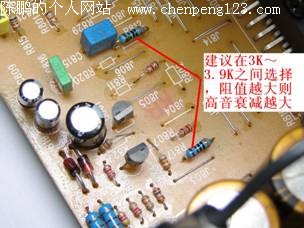 根据媒体对N-35G的测试和实际试听,其高音稍重,如果要得到平衡的音色,必须进行衰减。电子分频技术的优势又一次得到体现,无须去调整复杂且成本高昂的传统分频器元件参数,只需要简单地更换高音功放的反馈电阻,将2K的R812 R817换成3K即可。图22和图23是更换前后的图片。