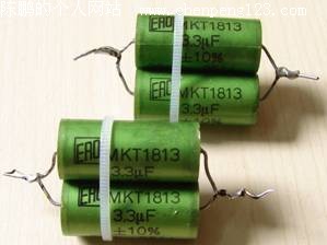 发烧友眼里当然容不得沙子,该电解也逃脱不了被更换的命运。笔者将其更换为 6.6uf的ERO聚丙稀薄膜电容,分别由2只3.3uf/250V、被香港发烧友誉为“声底解析透明感极佳 ”的ERO MKT电容并联而得(图25、图26),4只价格约10元。