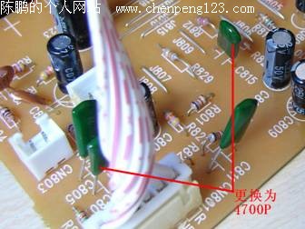 打摩方法:直接短接此电容和焊下旁边2只0.1uf的瓷片电容。