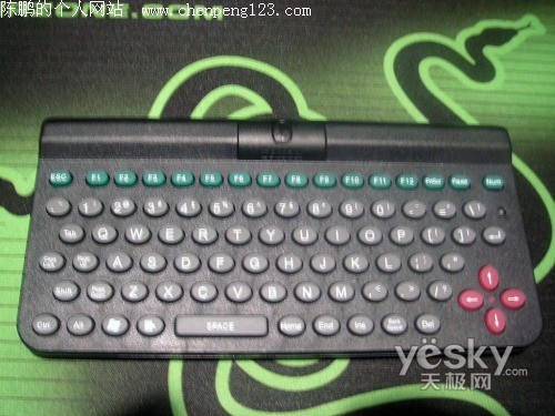 这款键盘造型非常小巧,有点类似于快译通的样子。大小也和其差不多,比一个成人的手掌略大一点而已。