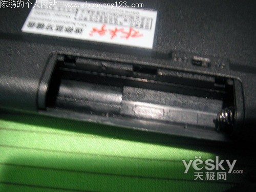 这款键盘还有一个亮点就是采用了无线蓝牙技术,只用有蓝牙接受设备一般都可以识别出来。所以不仅仅应用在电脑上,而且还能配合投影机在会议中做演示器用。键盘背面有安置电池的电池仓,采用两节7号电池供电。