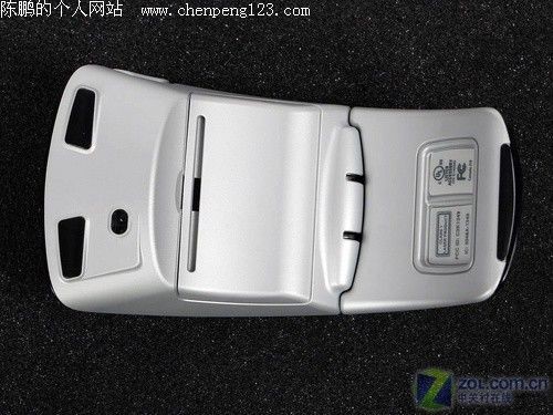 我们从鼠标底面方向能够清楚的看到鼠标是如何完成折叠设计的,设计还是十分巧妙的,而且我们可以注意到它的接收器,似乎时悬在上面的,这又是如何做到的呢?请大家接着往下看。