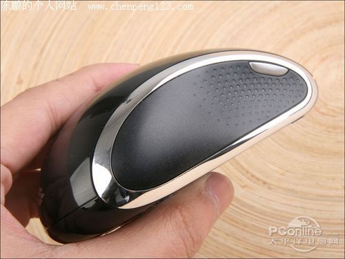 鼠标左右对称,高亮的黑色镜面材质突显鼠标高贵专业的商务气质。左右两边辅以镀铬边装饰,令鼠标视觉上更有层次感。而最让笔者欣喜的是,鼠标两个侧面采用前凹后凸仿肤材质的设计,使鼠标的曲线完全符合拇指的人体工学设计,整体更加贴手,把持鼠标更舒适。