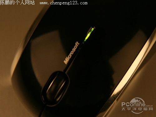 在滚轮后方有一电源指示灯,鼠标每次启动电源指示灯会点亮10秒,作为通电提示。