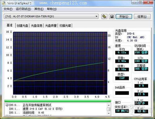 飚王 SED001超薄外置刻录机对DVD-R的起始读取速度为3.40X,最高读取速度为8.18X,接口突发速率为18MB/s,方式为CAV(恒定角速度),读取过程顺利。