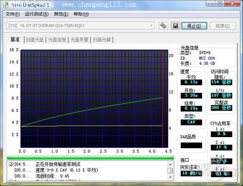 飚王 SED001超薄外置刻录机对DVD+R的起始读取速度为3.39X,最高读取速度为8.19X,接口突发速率为18MB/s,方式为CAV(恒定角速度),读取时比较顺利。
