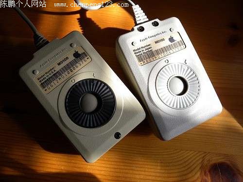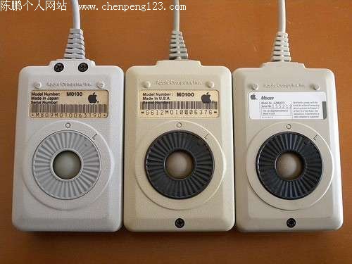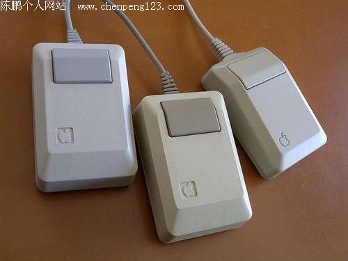 以下是1984年-1986年苹果鼠标先后推出的三款鼠标,从左至右依次为Macintosh Plus Mouse(1986)、Macintosh 128k / 512k Mouse(1984)、Apple Mouse IIc(1984)。