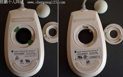 接下来是Apple Desktop Bus Mouse II鼠标来自马来西亚生产的版本与来自中国生产的版本之间的对比。