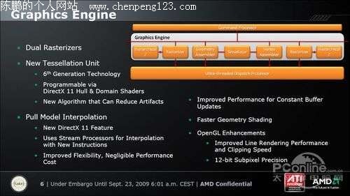 Cypress(RV870)采用了新的图形引擎,带来了全新的DirectX 11技术、新的指令集、改进的纹理单元等,更低的资源消耗便能获得更好的性能提升。