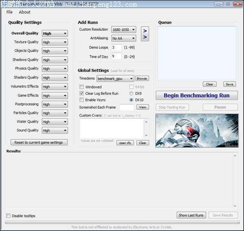 基于CryengineII的《孤岛危机》至今仍是公认最变态的3D游戏,玩家们还戏称为“显卡危机”,可见其对显卡性能要求之高。我们采用的是Crysis游戏自带的Benchmark进行测试。