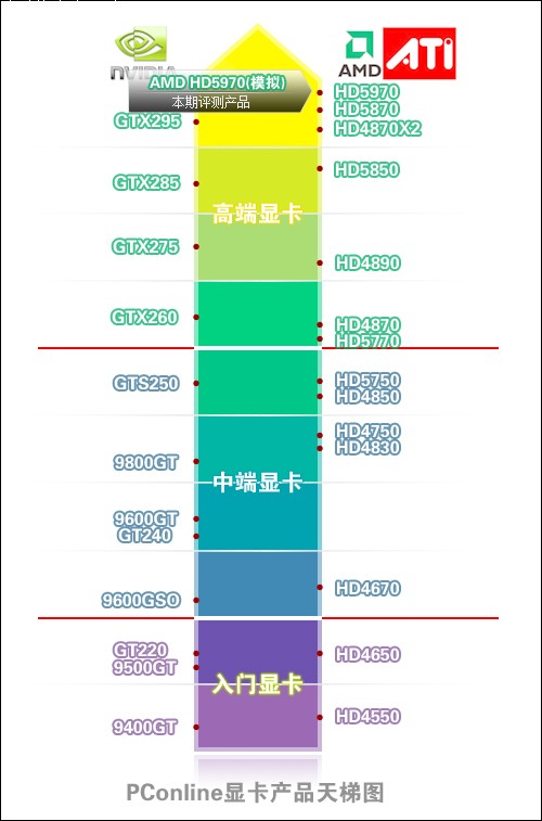在本期测试中,我们采用了显卡天梯图以便更直观的体现出显卡的具体性能以及对比测试显卡之间的性能高低。同时,通过这个显卡天梯图我们能一目了然的看到当前主流显卡之间的相对排位。当然,目前显卡天梯图必定存在一定瑕疵,如果网友有更好的意见或者见解都可直接在留言中表达,我们会根据网友的反馈情况不断地进行改进。