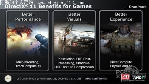 AMD-ATI新一代显卡Radeon HD 5800系列将支持三大技术,分别是微软最新的3D API DirectX 11、多屏显示技术ATI Eyefinity以及并行计算技术ATI Stream。这三大技术将回是新一代HD 5800显卡的重点技术,下面我们一起看看这三大技术将为我们带来什么样的效果。