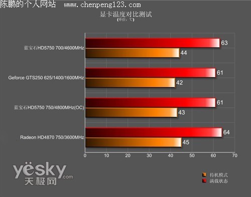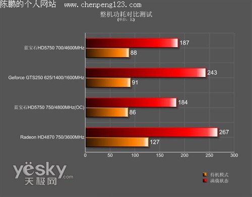 通过对三款显卡的温度和功耗测试发现,蓝宝石HD5750显卡的表现让笔者相当惊讶,特别是在功耗控制方面表现非常优秀,无论待机还是满载状态都远低于另外两款显卡,即使是在超频后功耗仍然控制得很好。相对于上代的Radeon HD4870显卡来说,蓝宝石HD5750显卡在功耗方面确实有了质的飞跃,这跟AMD官方宣称的待机不到20W、满载86W非常吻合。