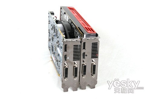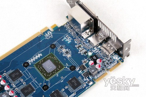 输出接口部分,蓝宝石HD5750显卡继续沿用了Radeon HD5800系列的接口组合,均为Display Port+HDMI+双DVI的设计,除了完整支持主流高清视频接口外,而且还完美支持用来组建3屏显示的Eyefinity技术。
