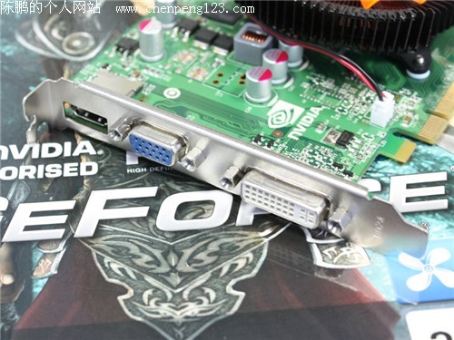 视频输出方面采用了非常实用的DVI+HDMI+VGA组合。值得注意的是,GT220首次核心集成了音频单元,可以轻松实现HDMI音/画一线输出,对于HTPC玩家来言,HDMI接口更是为欣赏高清提供了最大的方便。