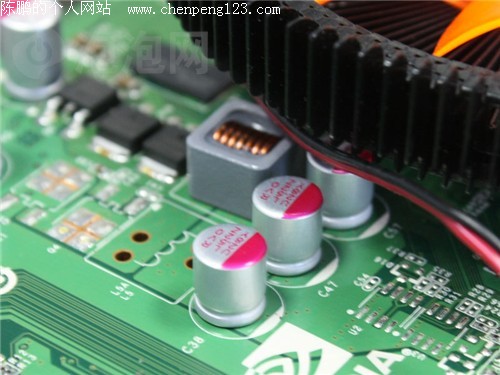 供电部分,由于核心采用40nm工艺制程,其对于供电的要求并不高,因此显卡配备的1+1相供电已经足以满足GT220的供电需求。可以看到,映众(Inno3D)Geforce GT220至尊海量版采用的是全固体电容用料,寿命更长,稳定性也更强!显存部分提供了独立的一相供电,能够明显提升显存的使用稳定性,超频能力。
