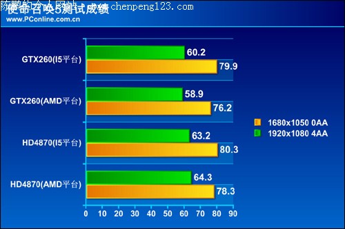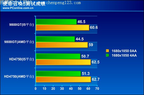 在游戏《使命召唤5》的测试部分我们看到在I5平台下高端的HD4870与GTX260显卡的成绩要领先于在AMD平台下的成绩,而HD4750和9800GT则无太大的帧数变动,出现这种情况的最重要原因是虽然I5处理器在性能上要领先AMD Phenom II X4 955,但此时HD4750与9800GT已经是瓶颈因此在I5平台下也就看不出性能提升了,而HD4870与GTX260则因为显卡本身不是瓶颈所以在I5平台下有性能提升。