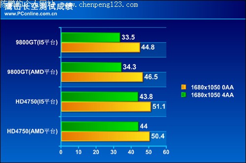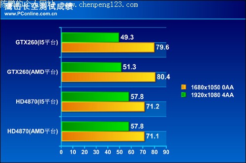 在游戏《鹰击长空》中我们看到对比四张显卡在I5与AMD平台下的游戏帧数不难发现它们之间的差距已经是微乎其微,并且可以说是几乎没有任何的变化。