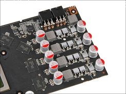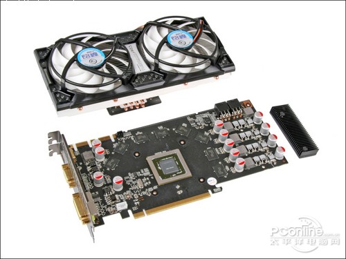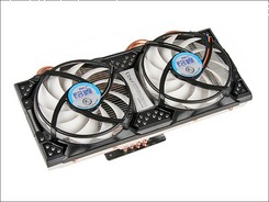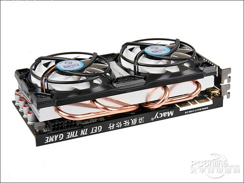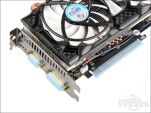 该显卡的散热系统还具备温控功能,风扇转速可根据GPU温度自动变化,进一步降低显卡噪音。以PWM控制代替传统的电压控制,风扇低速运转更稳定,有效提高散热系统的寿命。不过,与铭鑫采用AC散热方案的显卡一样,该显卡要额外占据2个PCI-E插槽,不利于插槽数目小的迷你主板安装。