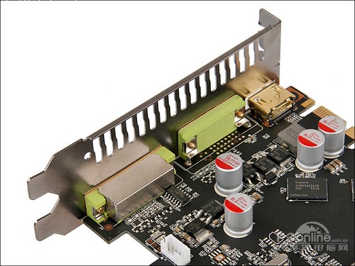 显卡接口设计方面也不乏卖点,镀金设计的接口在在抗氧化性能上更上一层楼,电磁防护罩的加入也对电磁辐射有一定的屏蔽作用,保证视频信号输出的纯净。HDMI+VGA+DVI的主流布局兼顾了高清输出的同时,也免去了外接转接口的麻烦。