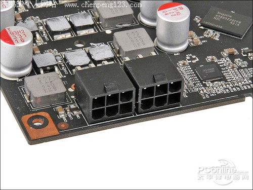 铭鑫在显卡供电设计上也不遗余力,5+1相的分离式供电,配合高档的富士通全固态电容、超薄型铁氧体电感与意法半导体高速MOSFET,让显卡在默认高频下运行更加稳定。相比中端显卡每相供电所采用的传统陶瓷或铁素体电感,铁氧体材料可以提供更好的散热和磁屏蔽性能。