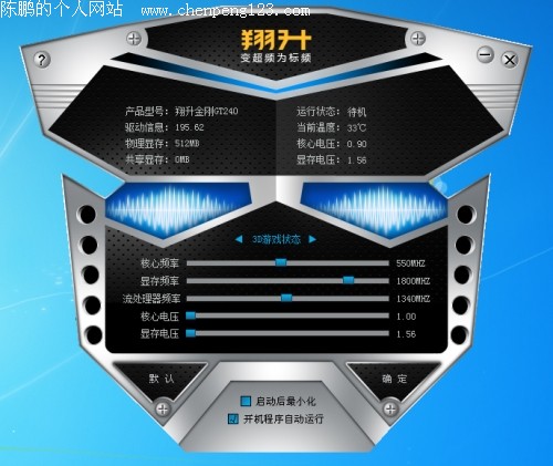 翔升这款软件分为上中下3个部分,值得说明的是在显存容量的显示上,翔升将其细分为物理显存以及共享显存,通过这个功能用户可以非常清楚的了解到自己的显存容量是否为真实容量。这款软件最大的特色就是支持显存电压调节,能够进一步提高显存超频上限。