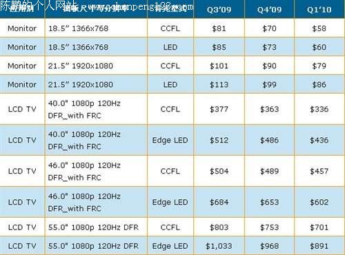 两种背光模式液晶面板的价格对比(图片转自DisplaySearch)