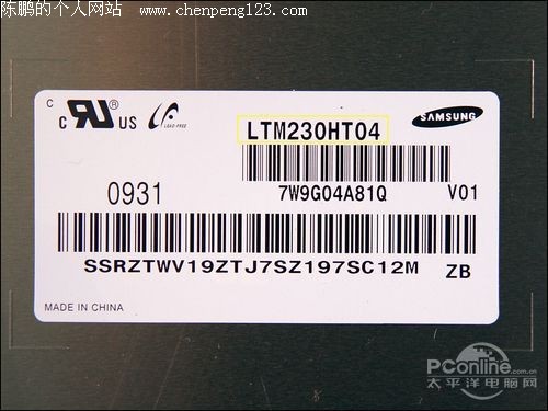 从面板上的标签我们可以看到三星 XL2370采用的是三星自产的型号为LTM230HT04的面板,产地为中国。接下来我们将面板拆解。