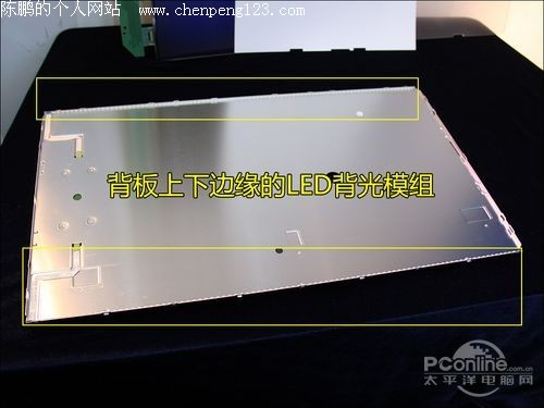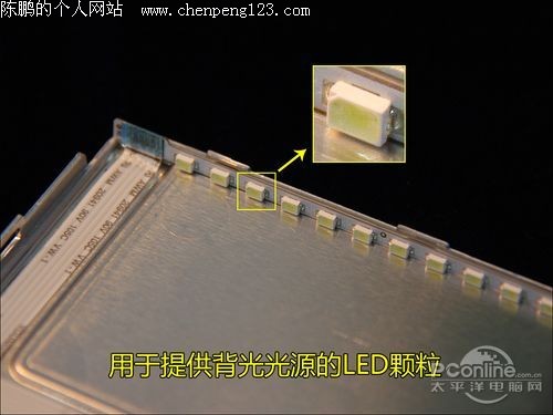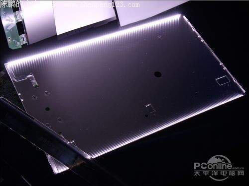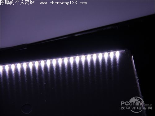 三星XL2370的LED光源并没有均匀分布在背板上,而是采用了上下两排的分布方式,通过导光板将垂直光线折射成水平光。