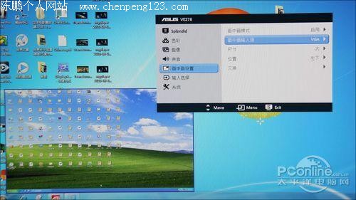 VE276Q提供PIP(画中画)功能,可以同时收看来自两个不同信号来源的影像,而上图是我们外接一台主机的到的效果。