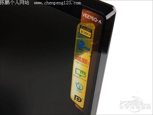 由于采用CCFL背光,显示器内部难免产生热量,而华硕VE276Q散热孔设计在显示器的上方,整齐排布的散热孔有助内部空气流通。
