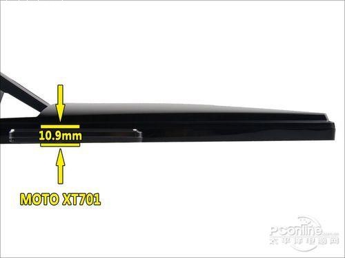 厚度方面,我们采用MOTO XT701与之对比,对于CCFL背光,27寸大屏幕而且内置音响,内置电源的产品来说,华硕VE276Q这厚度控制得不错。