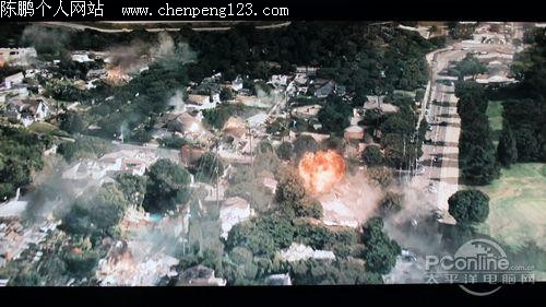 爆炸场景中,火光颜色浓郁,色彩过渡到位,但光源处有轻微曝光的现象。